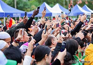 活动于上午9点在欢快的各国民族音乐中拉开帷幕。来自中国区、拉丁美洲区、非洲区及东南亚区的旋律轮番奏响,营造出热烈而温馨的迎宾氛围。10点整,开幕式正式启动,沃德绿世界董事长李德明博士发表亲切致辞,希望大家尽情享受这个属于我们自己的节日。随后,董事长李德明博士与拉丁美洲区总裁李红宾先生,中国区总裁刘少波先生共同参与了一场别开生面的启动仪式,将象征健康与活力的蓝莓汁缓缓灌注于“筑”字Logo中,将开幕气氛推向高潮!