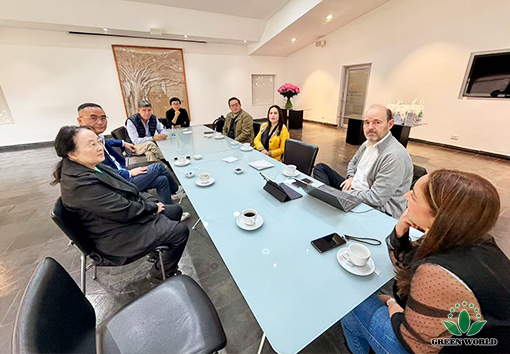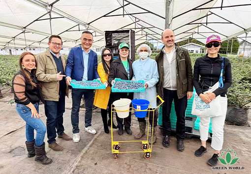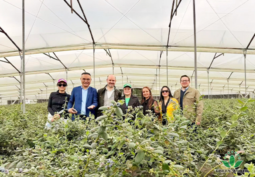 哥伦比亚当地时间11月10日,沃德绿世界代表团前往哥伦比亚花卉与蓝莓种植的领军企业——FLORES FUNZA公司进行参观交流,共同探讨蓝莓种植技术与产业合作新机遇。代表团由绿世界董事长、总裁李德明博士带队,成员包括绿世界董事、副总裁、拉丁美洲总裁李红宾先生、美国和加拿大分公司总经理梁莹女士、哥伦比亚分公司总经理Nohora女士、以及哥伦比亚分公司业务经理Miguel Gerrero先生。