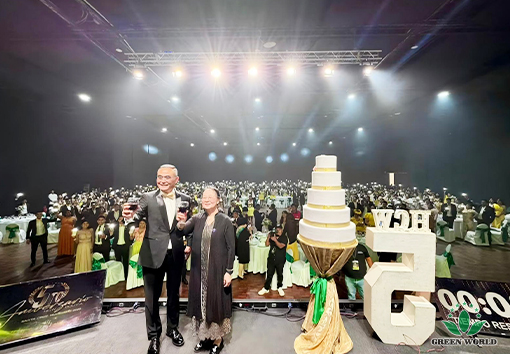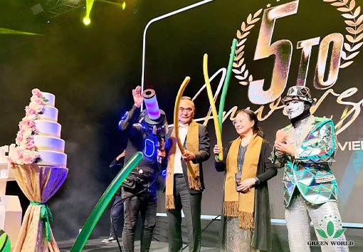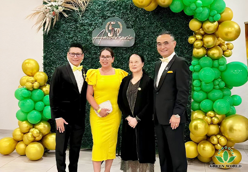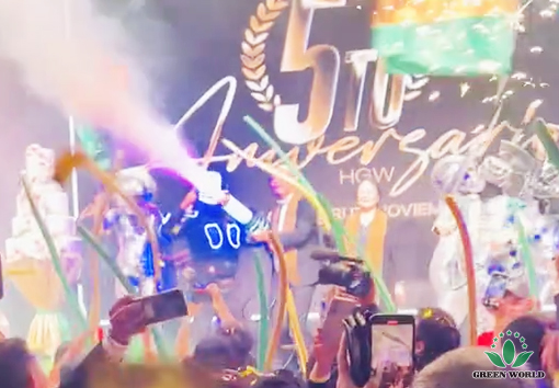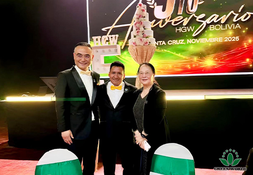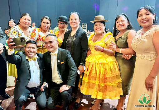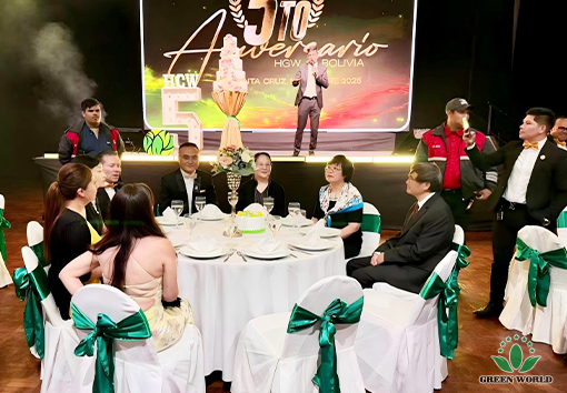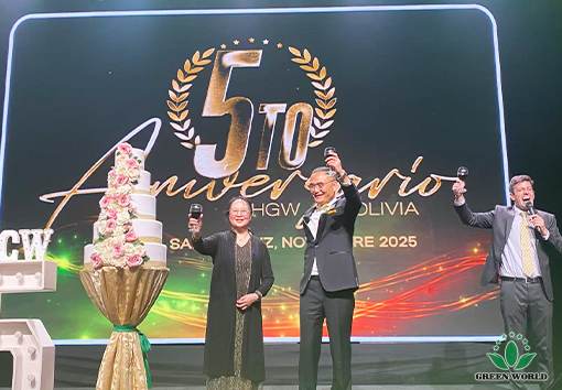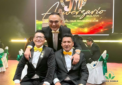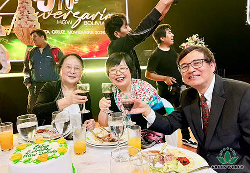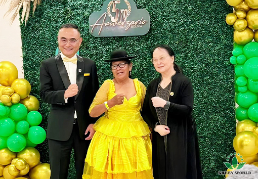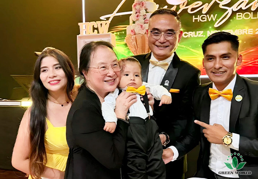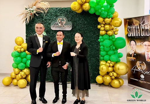 玻利维亚当地时间11月14日晚,沃德绿世界玻利维亚分公司五周年庆典晚宴在圣克鲁斯FEXPOCRUZ会场隆重举行。董事长、总裁李德明博士,董事、副总裁、拉丁美洲总裁李红宾先生,美国和加拿大分公司总经理梁莹女士,玻利维亚分公司总经理Gabriel先生、业务经理Andrea女士、活动经理Omar先生,以及家庭医生沈丽静夫妇等嘉宾,与六百余名分公司员工及经销商家人们欢聚一堂,共同见证了这一温馨而热烈的荣耀时刻。