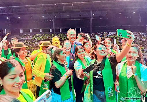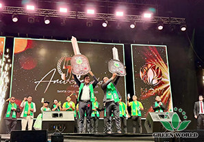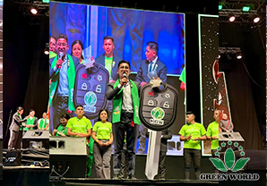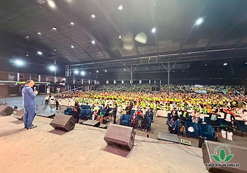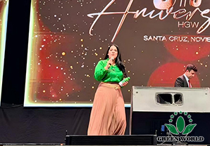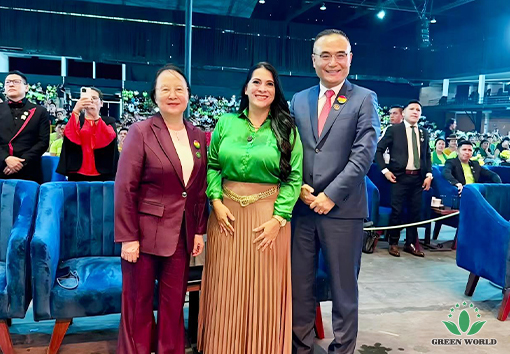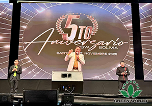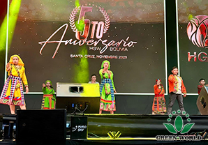 玻利维亚当地时间11月15日,沃德绿世界玻利维亚分公司成立五周年庆典在圣克鲁斯SONILUM ARENA会场辉煌落幕。这是一场继往开来的五周年庆典大会!董事长李德明博士、副总裁兼拉丁美洲总裁李红宾先生、美国和加拿大分公司总经理梁莹女士、玻利维亚分公司总经理Gabriel先生、业务经理Andrea女士,以及特邀嘉宾沈丽静医生夫妇、玻利维亚直销协会(ASOEM)执行董事Milka Ortiz B.女士与超过四千名与会伙伴共同见证了这一荣耀时刻。