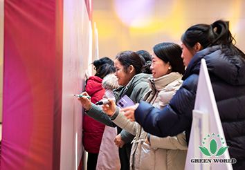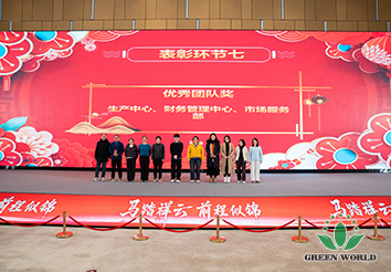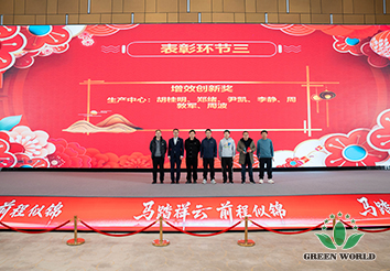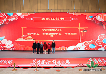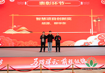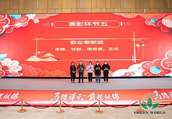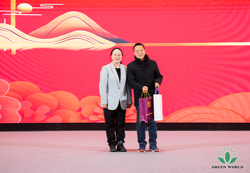表彰典礼于16时30分正式开始。沃德绿世界董事长李德明博士首先发表温情致辞。她深情回顾了过去一年全体员工同心协力的点点滴滴,对每一位坚守岗位、默默奉献的家人表达了最诚挚的感谢。并勉励大家在新的一年里继续秉持“以人为本,诚信通天”的企业文化,彼此支持,共同成长。