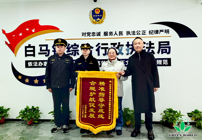 新春伊始,温情涌动。近日,沃德绿世界董事长李德明博士、董事兼中国区总裁刘少波先生、南京生产基地常务副总刘巧英女士一行专程前往南京国家农高区及溧水区市场监督管理局白马分局,向长期以来关心支持企业发展的属地政府和监管部门送上锦旗和感谢信,表达诚挚谢意与新春祝福。